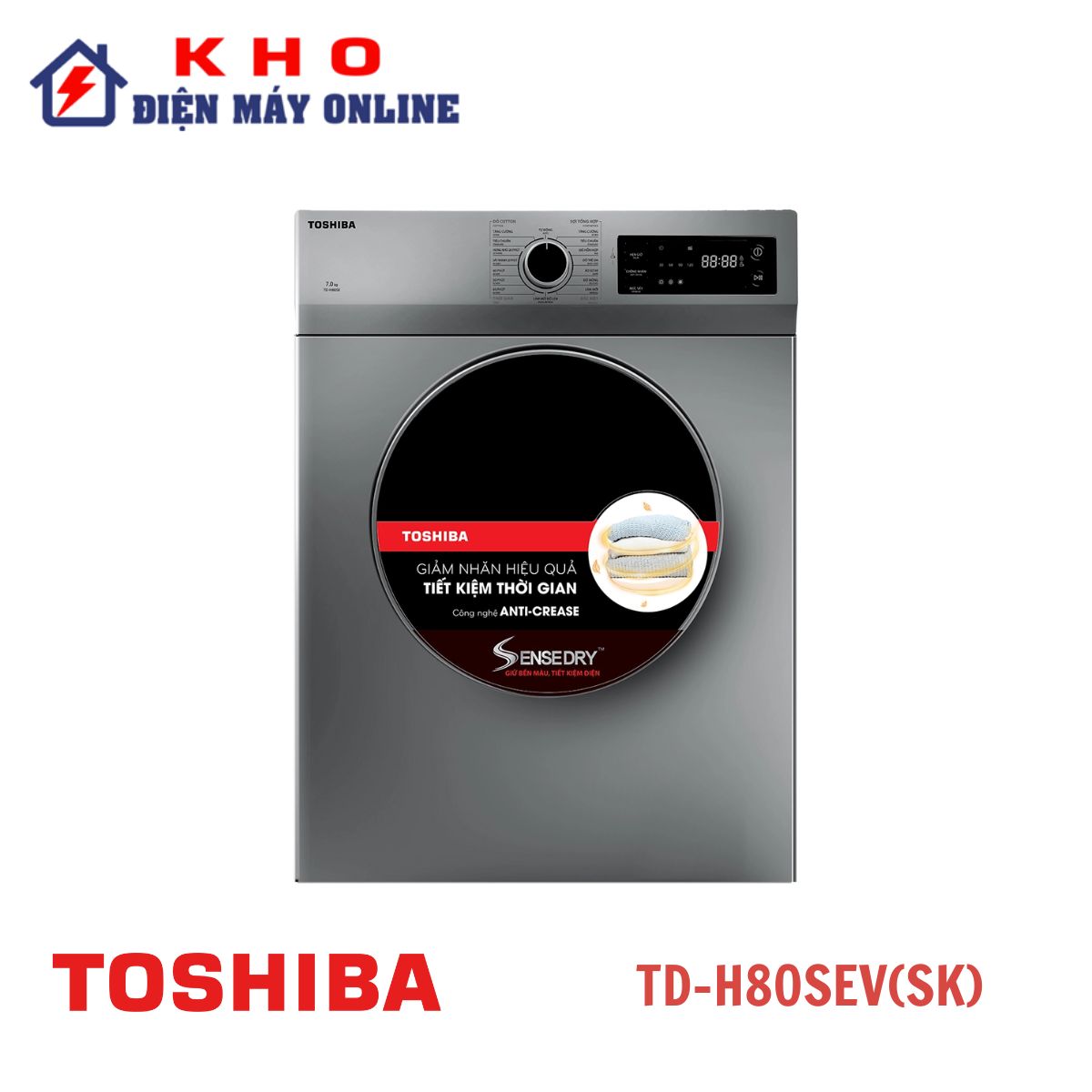 Máy sấy thông hơi Toshiba TD-H80SEV(SK) 7kg cửa ngang – Sấy nhanh, chống nhăn quần áo hiệu quả