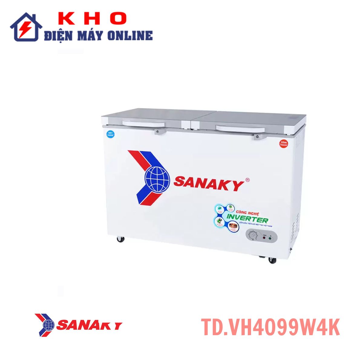 Tủ đông Sanaky TD.VH4099W4K 280 lít | Inverter 2 ngăn 2 cánh là lựa chọn lý tưởng cho gia đình và cửa hàng nhỏ cần một chiếc tủ vừa tiết kiệm điện vừa tiện lợi. Với thiết kế hiện đại, cửa kính cường lực sang trọng, dàn lạnh đồng bền bỉ và khả năng làm lạnh nhanh, đây là model đáng cân nhắc trong phân khúc tủ đông – mát dung tích vừa.